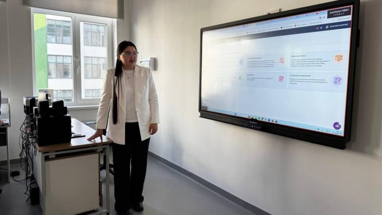 Қазіргі таңда жасанды интеллект білім саласына белсенді түрде енгізіліп жатыр. Біздің “Келешек мектебіміз” де пилоттық жобаға қатысып отыр. Бұл жоба аясында біз бірнеше цифрлық платформада жұмыс істейміз, – дейді ол.