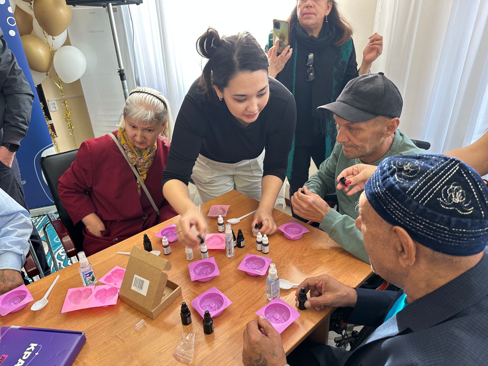 Қонақтар тұрғындарға көңіл бөліп, жылы лебіздерін білдіріп, мейірім мен қуаныш сыйлады. Қарттар үшін еріктілер сабын қайнату бойынша шеберлік сабағын ұйымдастырды. Оған шамамен 40 тұрғын қатысты. Әрбір қатысушы өз қолымен сабын дайындап, оны өзімен бірге алып кетті. Бүгінде қарттар үйінде 116 адам тұрады. Сонымен қатар еріктілер туған күн иелерін құттықтап, концерттік бағдарлама ұсынды. Шараның ерекше сәттерінің бірі – «Теңізшевройл» компаниясының қызметкері, АҚШ-тан келген Джон Ригбидің ән орындауы болды. Ол қазақ тілінде бірнеше ән шырқап, оның бірі — өз шығармасы. Джон екі жылдан бері Атырауда тұрып, «Теңіз жүрегі» ҚБ-нің еріктілік жобаларына белсене қатысып келеді.
