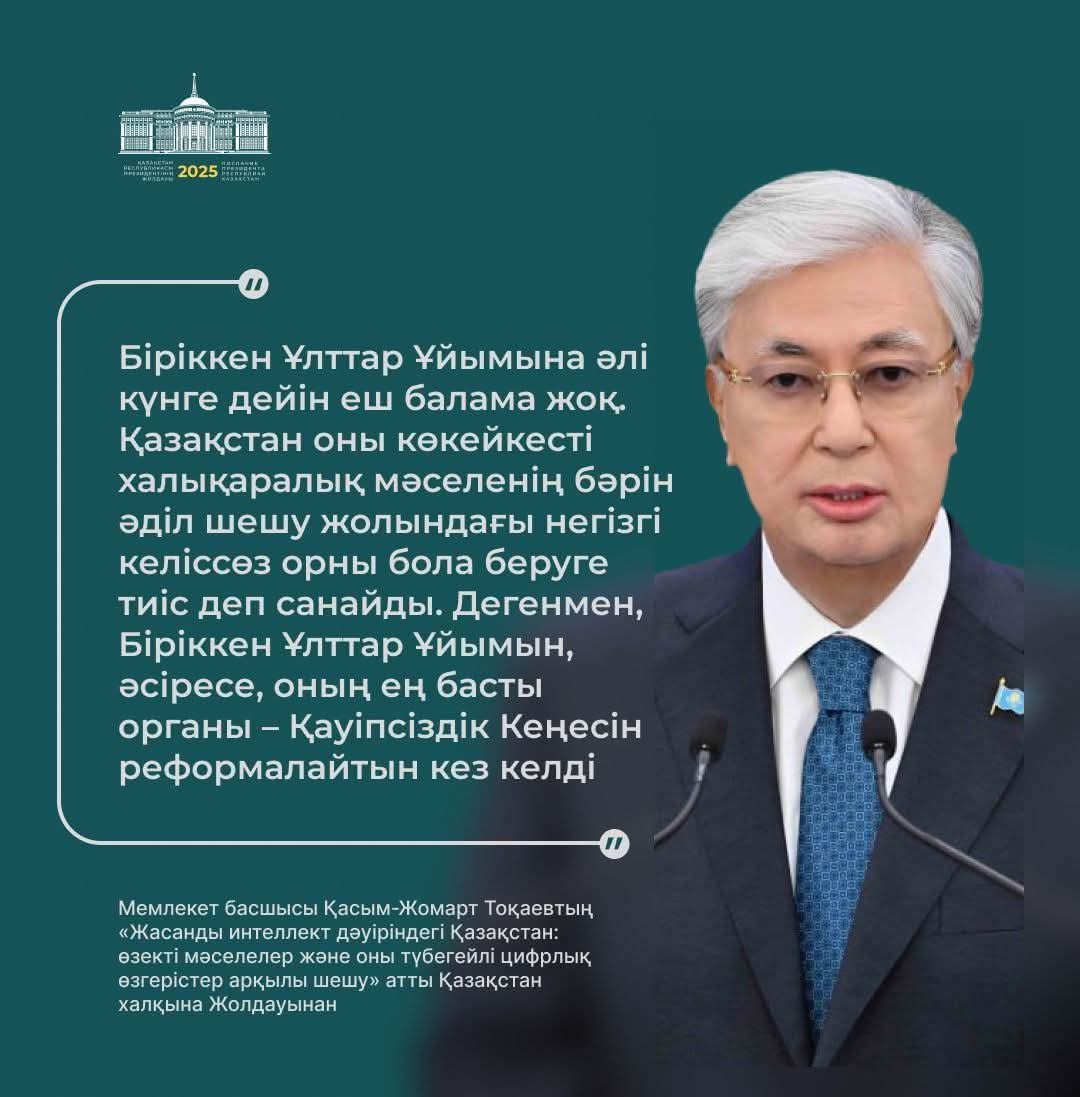 Мемлекет басшысы Қасым-Жомарт Тоқаевтың Біріккен Ұлттар Ұйымын, әсіресе Қауіпсіздік Кеңесін реформалау туралы пікірі – бүгінгі халықаралық қатынастардағы ең өзекті мәселелердің біріне берілген нақты әрі салмақты баға.