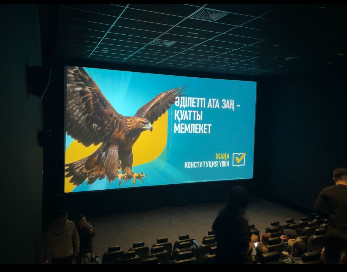 Еліміздің барлық өңірлеріндегі кинотеатрларда Қазақстан Республикасының Конституциясын қолдауға арналған арнайы бейнероликтерді көрсетіліп жатыр, деп хабарлайды Egemen.kz.
