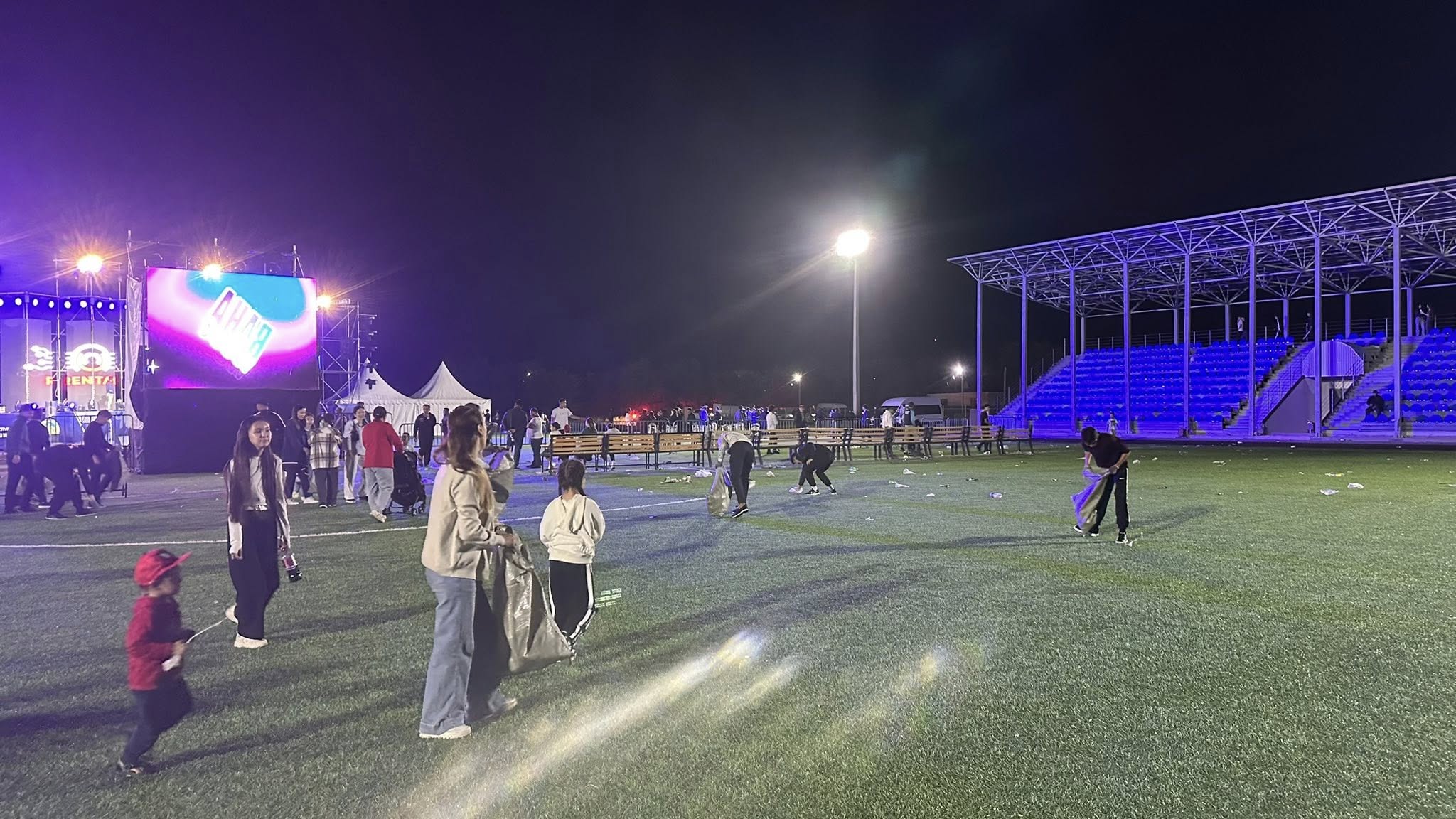 Желіде концерттен кейін стадионда қалдықтарды жинап, аумақты таза күйінде қалдырған қызылқоғалық жастардың суреттері тарады.