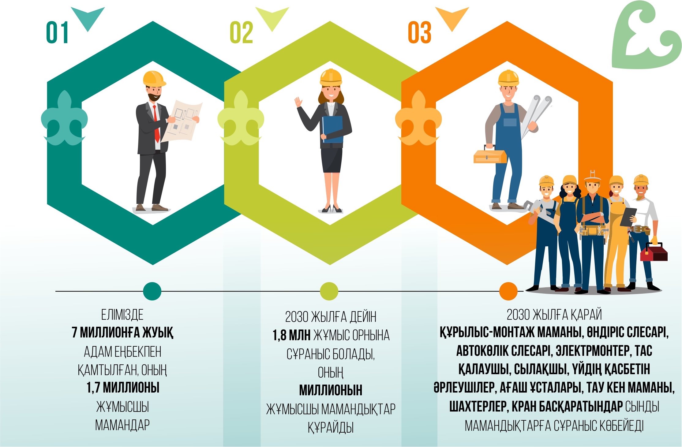 Бұл туралы Президент «Әділетті Қазақстан: заң мен тәртіп, экономикалық өсім, қоғамдық оптимизм» атты Жолдауында: «Біз жұмысшы мамандықтарын дәріптеу арқылы қоғамда еңбекқор және нағыз маман болу идеясын насихаттаймыз. Бұл «Адал азамат – Адал еңбек – Адал табыс» қағидатына толық сай келеді. Қоғамда еңбекқорлық, кәсібилік сияқты қасиеттер өте жоғары бағалануға тиіс. Өз кәсібін жетік меңгерген мамандар ұлт сапасын арттырады. Жұмыстың жаманы жоқ, кез келген еңбек – қадірлі. Ең бастысы, әркім жауапкершілікті терең сезініп, өз міндетін сапалы атқаруға тиіс. Сонда ғана еліміз дамудың сара жолына түседі», деп атап көрсетті.